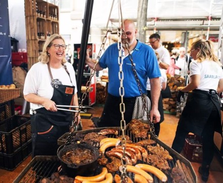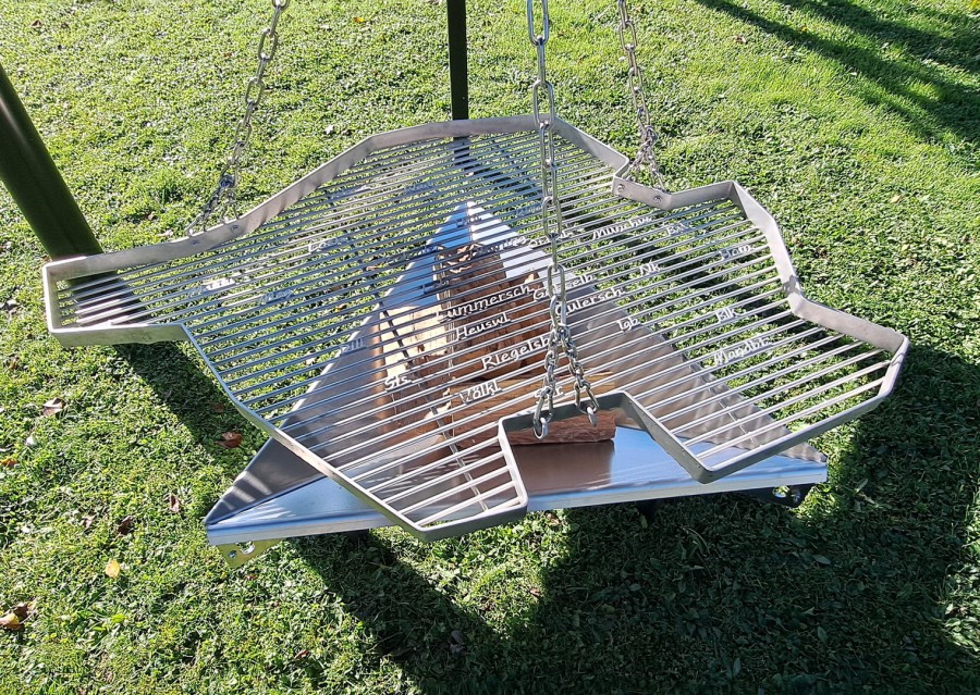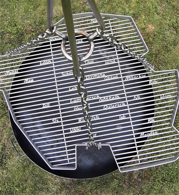 Wir bringen Ihnen für Ihr Event einen Saarlandschwenker mit 1,50 m! Diagonale, einer Feuerstelle, einem Dreibein von über 2,50 m Höhe, einer Überdachung und einer Ausgabetheke.